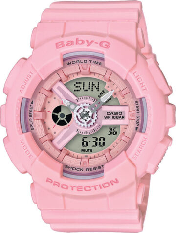 Модель жіночого годинника BGD-120P-7B колекції Casio Baby-G має корпус круглої форми виконаний з полімеру, з циферблатом білого кольору та електронними цифрами захищеним мінеральним склом. Пластиковий ремінець білого кольору, електронний механізм. Додаткові функції: Удароміцні, Повністю автоматичний календар, Світовий час, 12/24 годинний формат часу, Електролюмінесцентне підсвічування, Секундомір, Таймер зворотного відліку, Будильник, Функція повтору сигналу. Ця модель годинника підходить для дайвінгу.