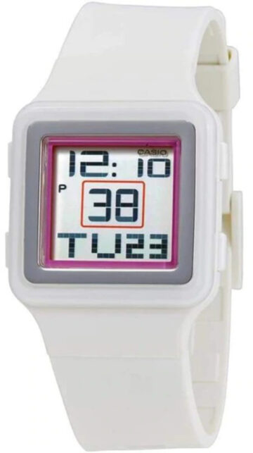 Модель жіночого годинника LDF-52-7A колекції Casio Futurist має корпус прямокутної форми виконаний з полімеру, з циферблатом білого кольору та електронними цифрами захищеним пластиковим склом. Пластиковий ремінець білого кольору, електронний механізм. А додаткові функції: Повністю автоматичний календар, Подвійний час, 12/24 годинний формат часу, Світлодіодне підсвічування, Секундомір, Будильник надають зручності. У цьому годиннику можна плавати, але не пірнати глибше 3 метрів.