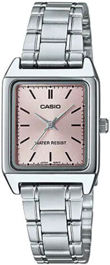 Модель чоловічого годинника LTP-1303D-4AVDF колекції Casio Standart Analogue має корпус круглої форми виконаний з нержавіючої сталі, з циферблатом рожевого кольору та індексами захищеним мінеральним склом. Сталевий браслет, кварцовий механізм. У цьому годиннику можна плавати, але не пірнати глибше 3 метрів.